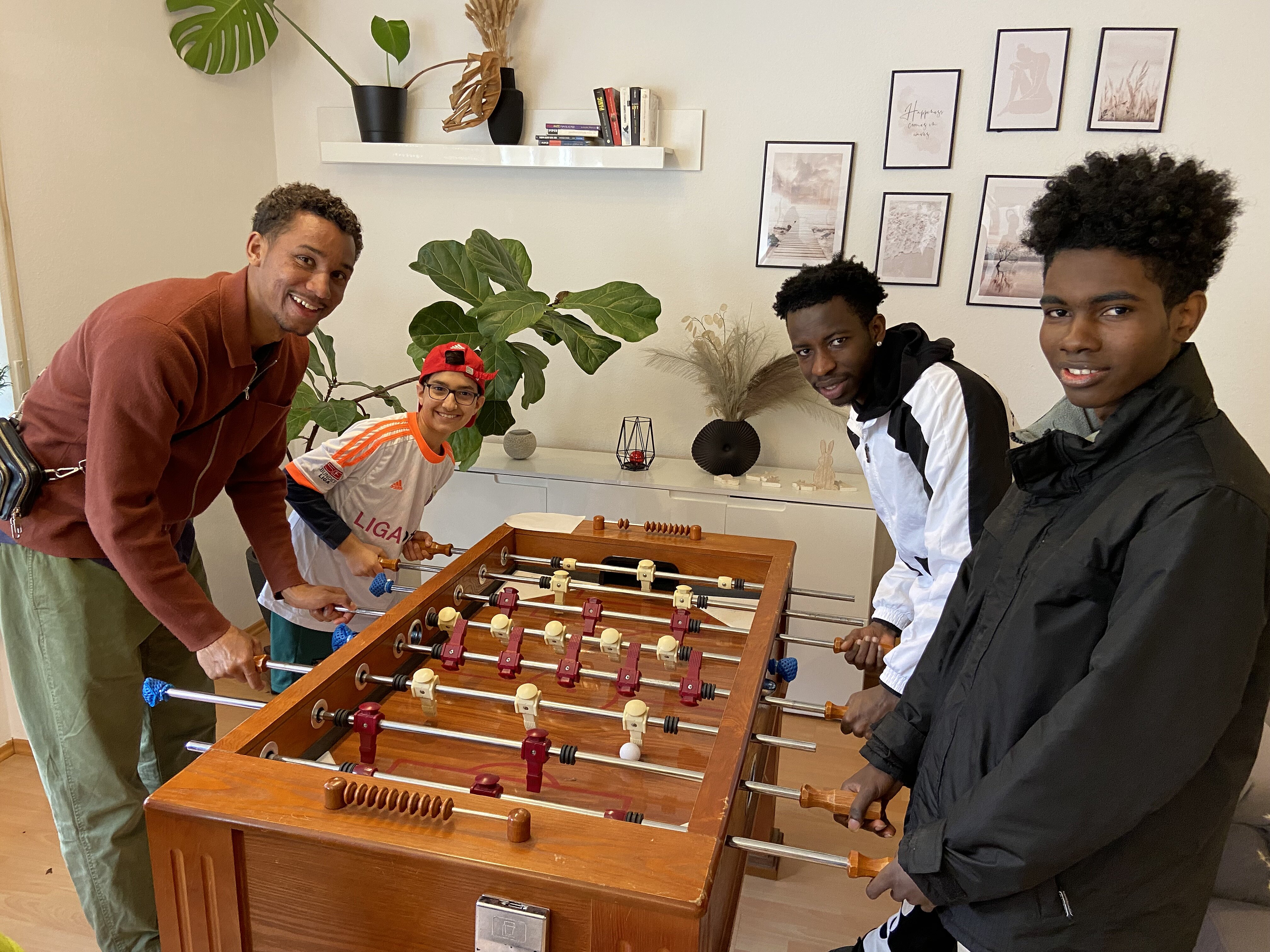 Bei seinem Besuch präsentierte sich der 26-jährige Fußballprofi als Star zum Anfassen. Vor Ort tauschte er sich intensiv mit den Kindern und Jugendlichen aus zeigte sich beim beim Rundgang durch die Wohngruppe sehr interessiert am Leben der Bewohnerinnen und Bewohner. In familiärer Atmospähre beantwortete Felix Uduokhai nicht nur die zahlreichen Fragen und erfüllte alle Foto- und Autogrammwünsche, sondern duellierte sich auch mit den Kindern und Jugendlichen am Kickertisch. Ein Star ohne Allüren.